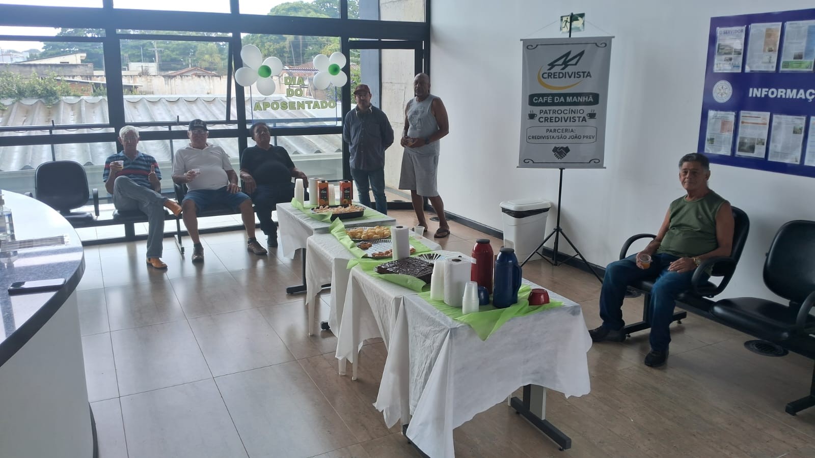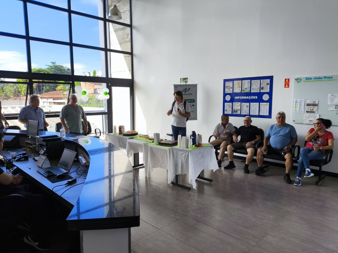 O São João Prev, em uma parceria especial com a Credivista, promoveu na sexta-feira, dia 23 de janeiro de 2026 um café festivo para celebrar o Dia do Aposentado – celebrado oficialmente no dia 24/01/2026. O evento, realizado na sede do Instituto, transformou a rotina do local em um momento de muita alegria, reencontros e valorização.